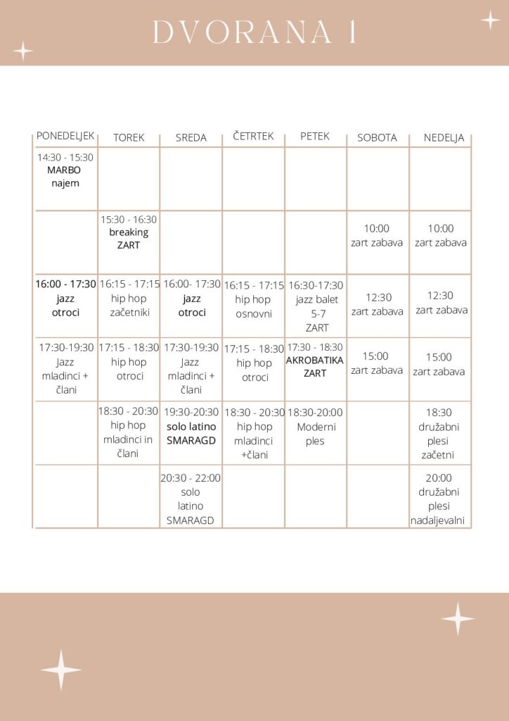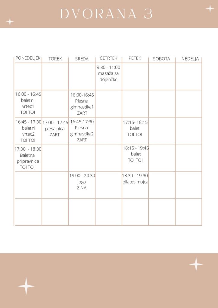 URNIK V TREH DVORANAH